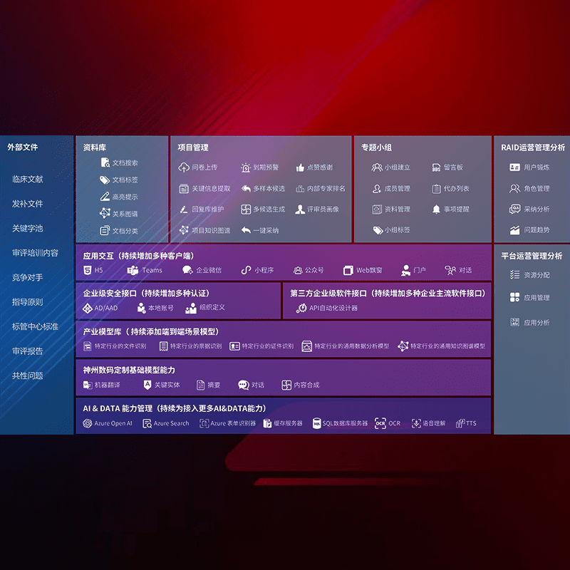医疗器械产品上市前,,,,要熟悉严格与繁复评审标准,,,,整理分析监管机构指导文件中的海量信息。。。企业急需一个智能化解决方案,,,,提升知识管理效率,,,,提高评审通过率,,,,以提升其市场竞争力。。。